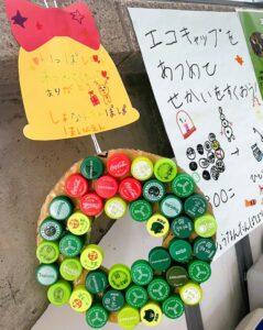 今年は、秋葉台文化体育館さん・湘南台自動車学校さんにも回収にご協力いただきました。少し遅くなりましたが、19日(木)に【お届け報告】と一緒に【クリスマスリース】のプレゼントを渡しに行きました。