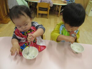 ▼保育園の七草粥