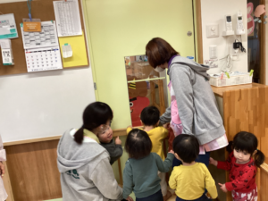 「パンツどこ〜?」「どこにわすれたんだろう?」と心配する子どもたち。鬼さんを気遣う優しい姿に、ほっこりした朝のひとときでした^^