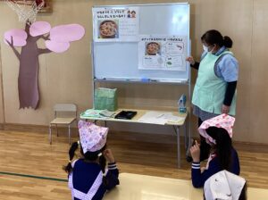 ▼給食室の森井先生から作り方を教えて頂きました。