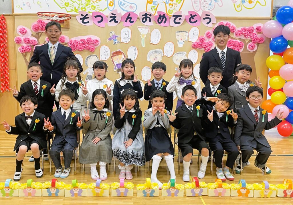 今日は卒園式。澄みわたる青空の下、16名の卒園児が新しい一歩を踏み出しました。