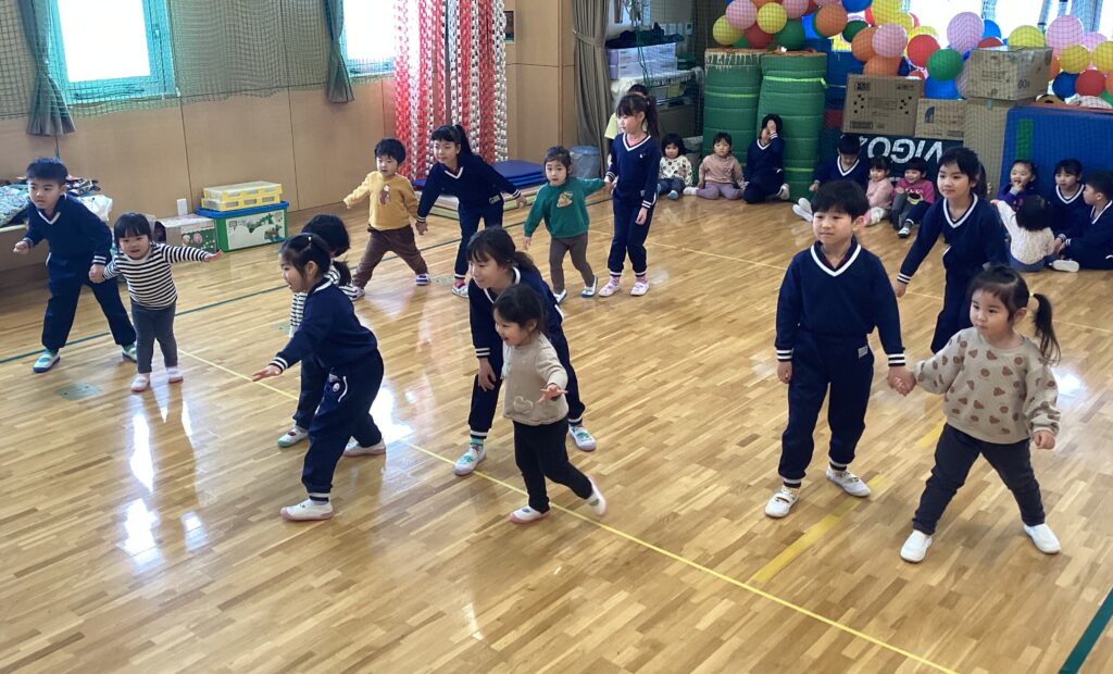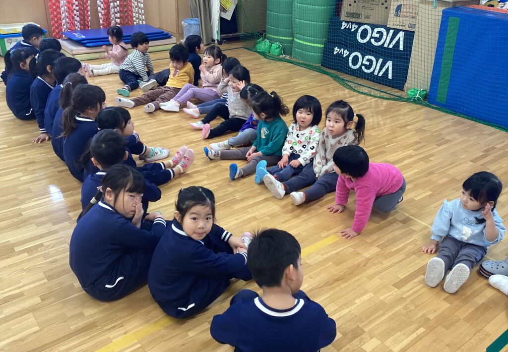 昨日はぽかぽか組さんとお外遊び、今日はきらきら組さんとホールで元気に遊びました!卒園児さんは、未来のA組さんにかっこいい姿を見せてくれています。