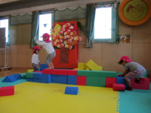 その他には、ソフト積み木で遊びました。