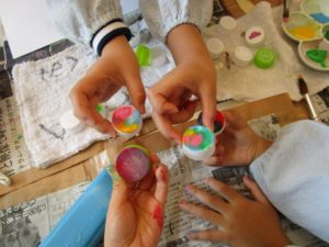 「こんな色になったー」と、お友達と見せ合いっこする姿も。。。