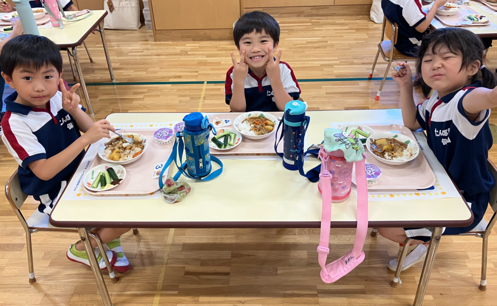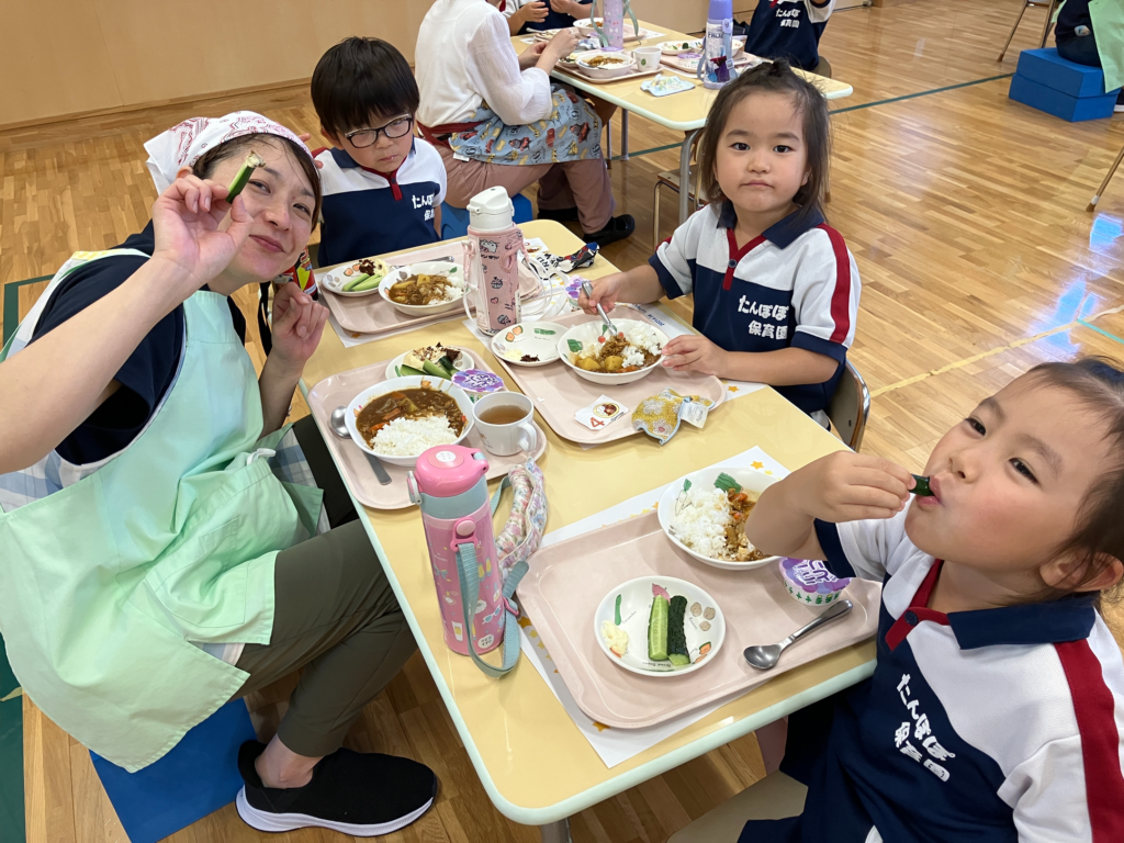 自分たちで作ったカレーと、自分たちで育てたきゅうりは格別。どれも全部美味しくて、今日もおかわり祭りのAB組さんでした♡