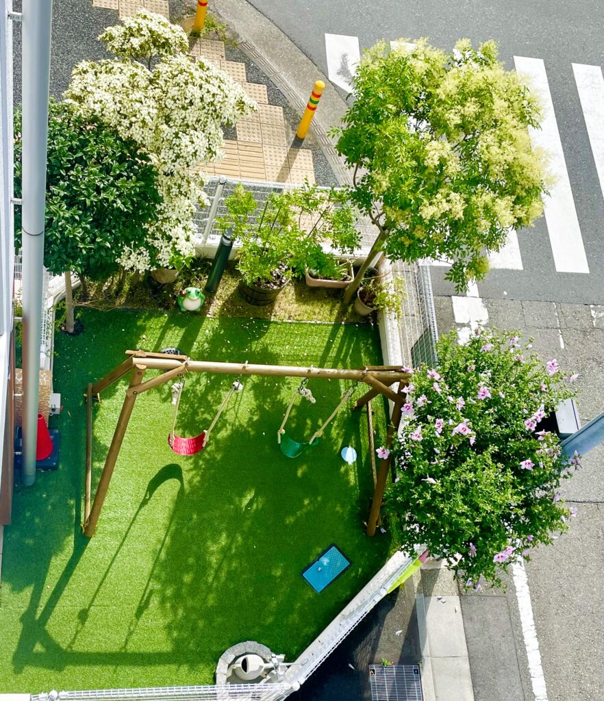 ▼今、ぶらんこ広場は緑とお花のピーク!自然が笑顔であふれています。