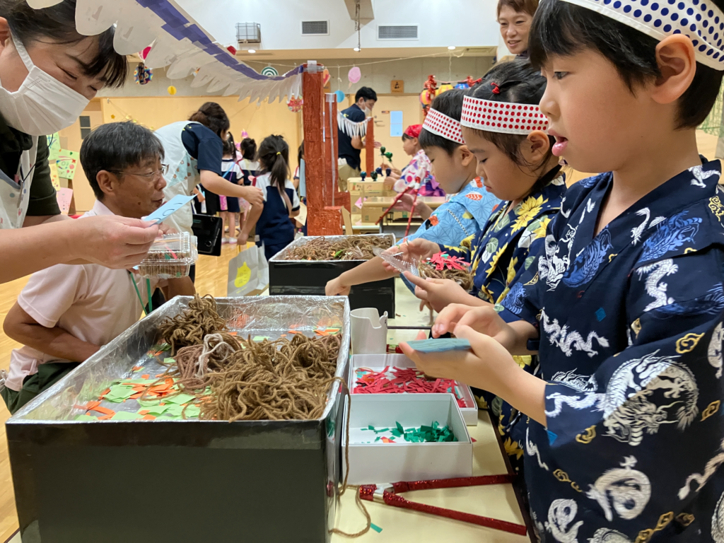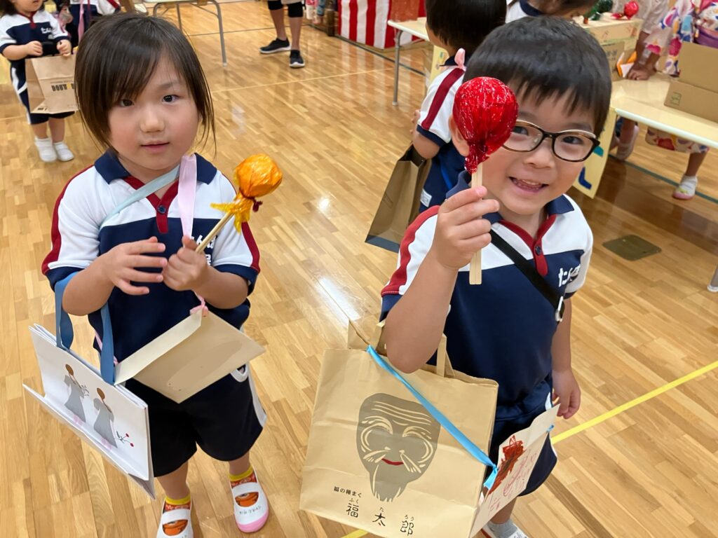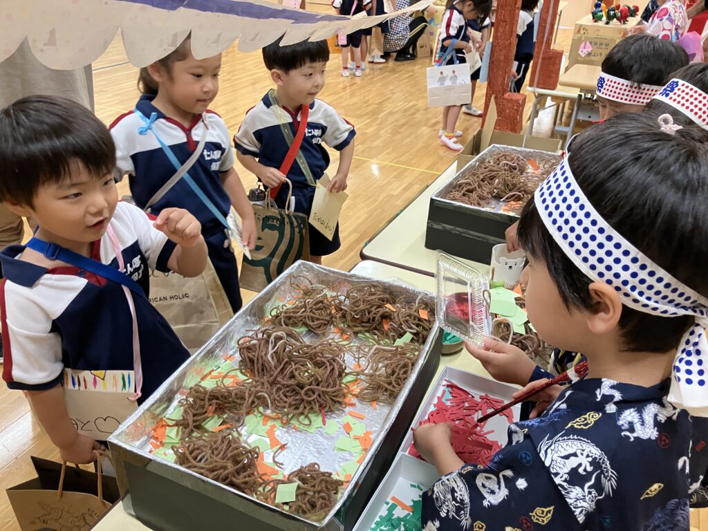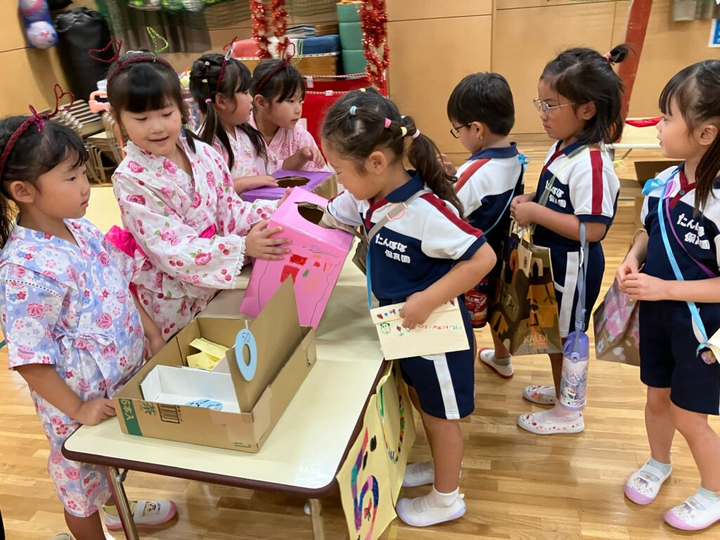 このあとは先生たちからのプレゼントタイム。やきそば屋さんとかき氷屋さんが登場!