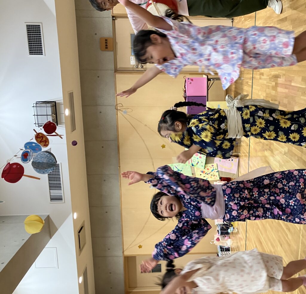 「花火がドーーン!」と、みんなで元気に踊ったあとはスイカわり。