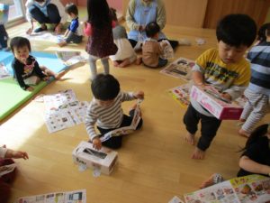 今日は避難訓練終了後、廃材を使って遊んでいきました。