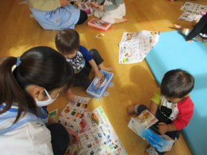 最後はチラシをマットの上に集め、その上にゴロゴロ、みんなで焼き芋ごっこを楽しみました。