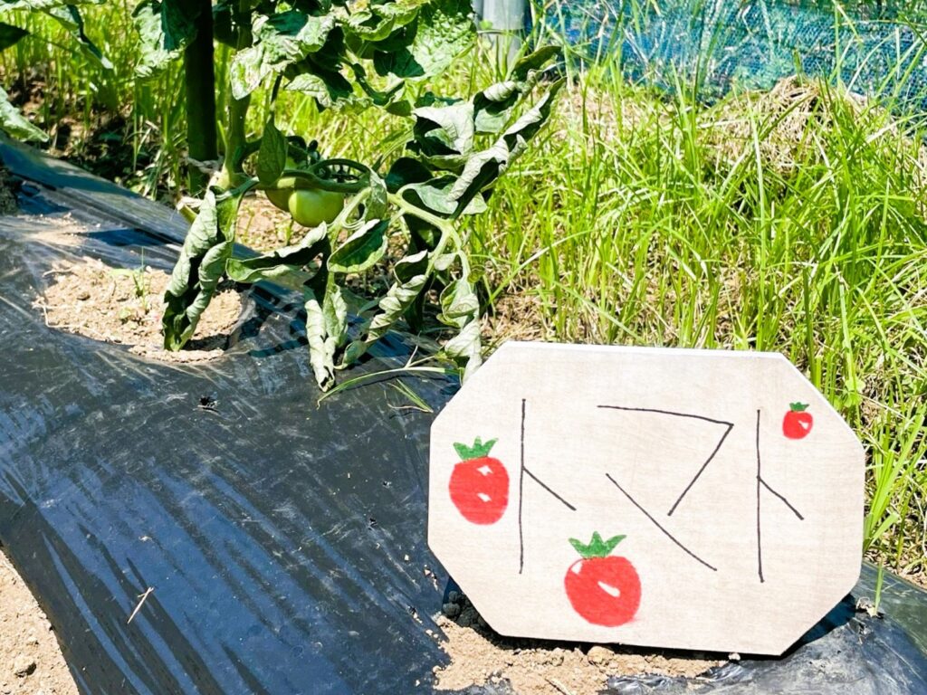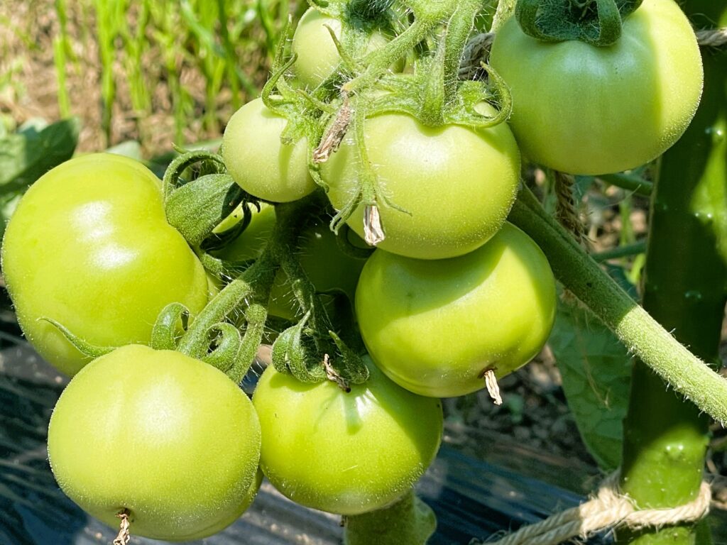 【トマト】中学生のおにいさんおねえさんと植えたトマト。夏休みに入ってしまって一緒に収穫はできなかったけれど、真っ赤に実ったかわいいトマト、少しおすそわけしてもらいました。