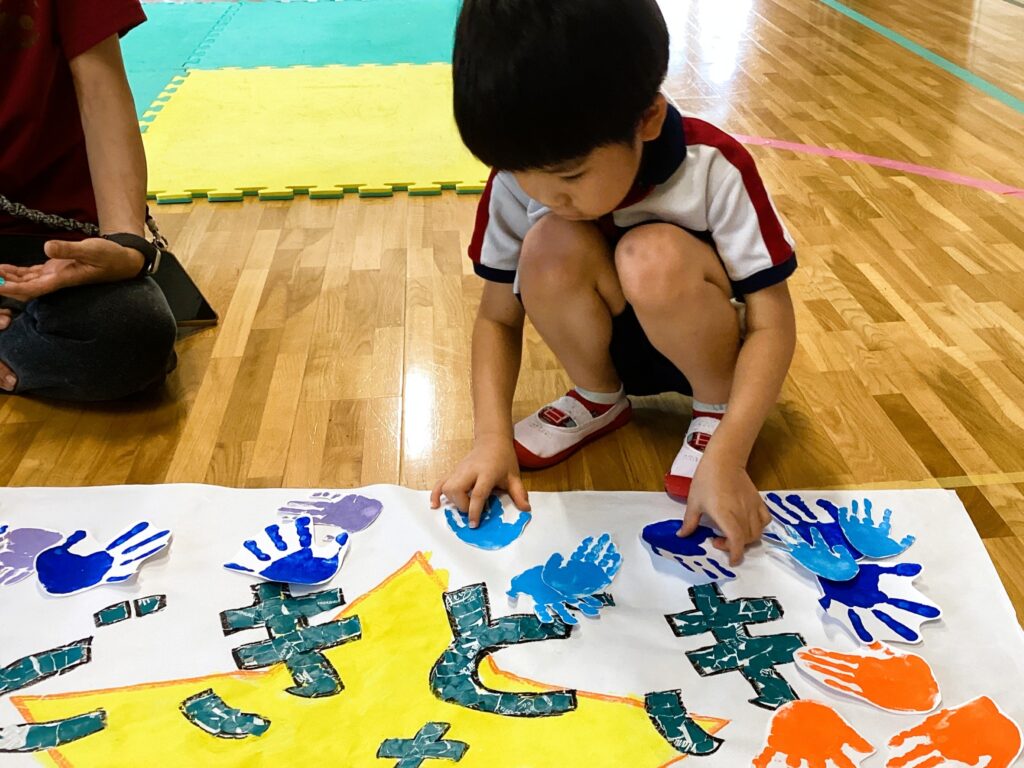 思うように配置できず、次々とみんなの集中力が途絶え始める中、わたしたちの声が届かないほど、黙々と手形と向き合い続ける姿には、ちょっと感動すら覚えました。