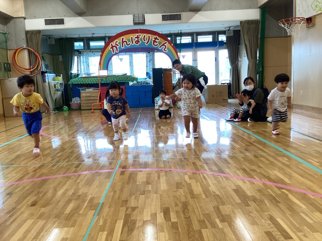 運動会に向けよーい、ドン!をやってみました。「位置について」のときにビシッと立っていられたきらきらさん。かっこよかったですよ。