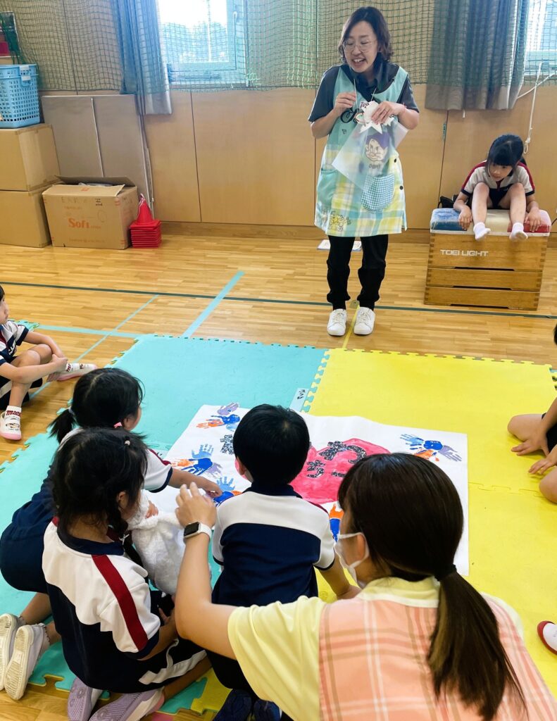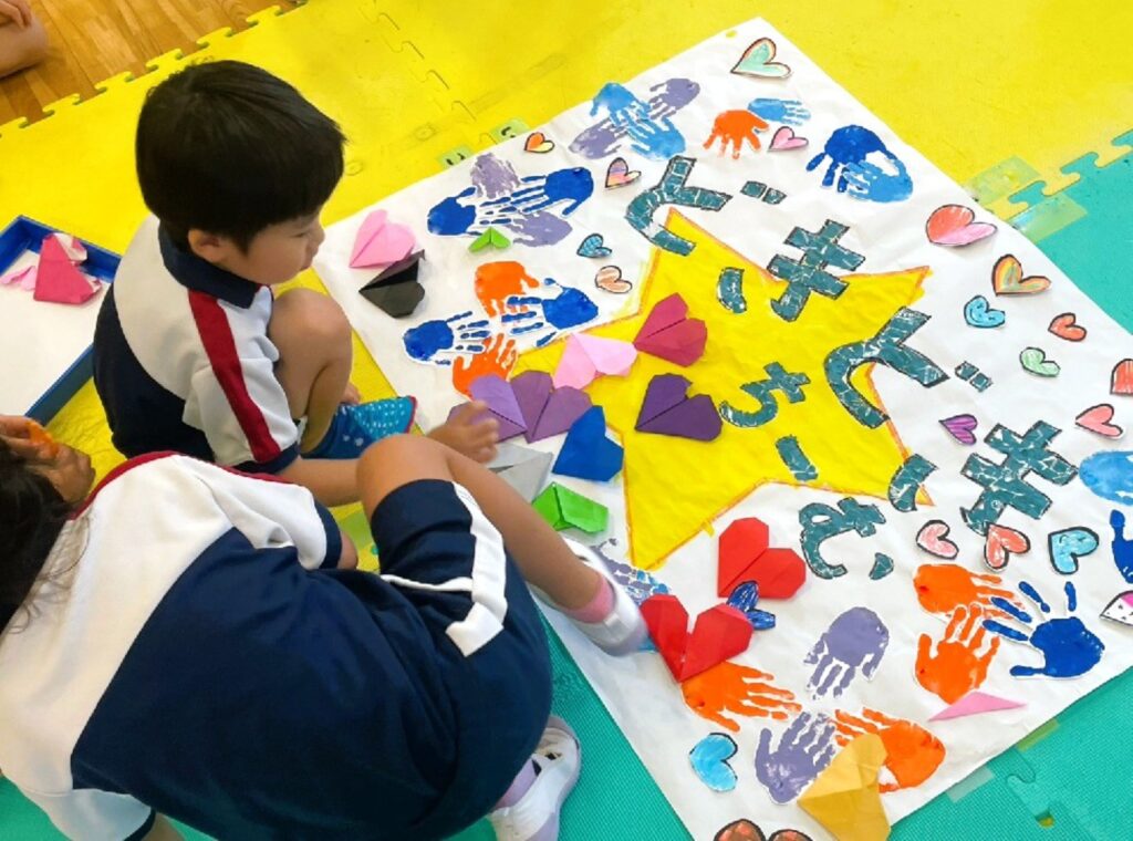 子ども会議で、みんなのアイデアで決まったのは、「お互いのマークを折り紙で作って貼ろう!そしてエール交換しよう!」ということ。とっても楽しそうなプランですよね。