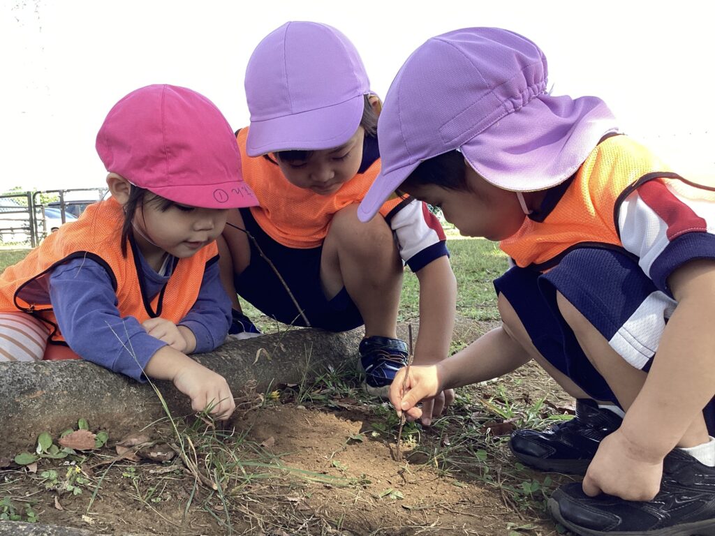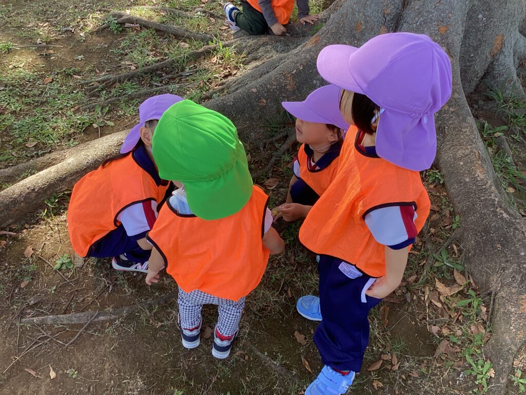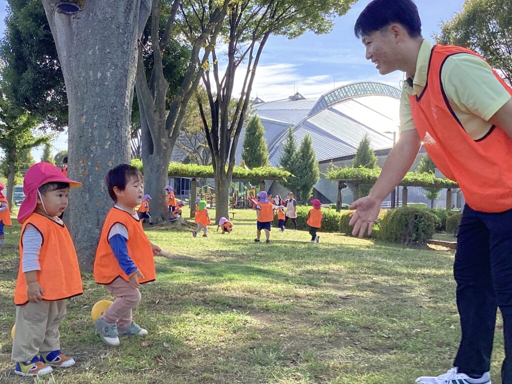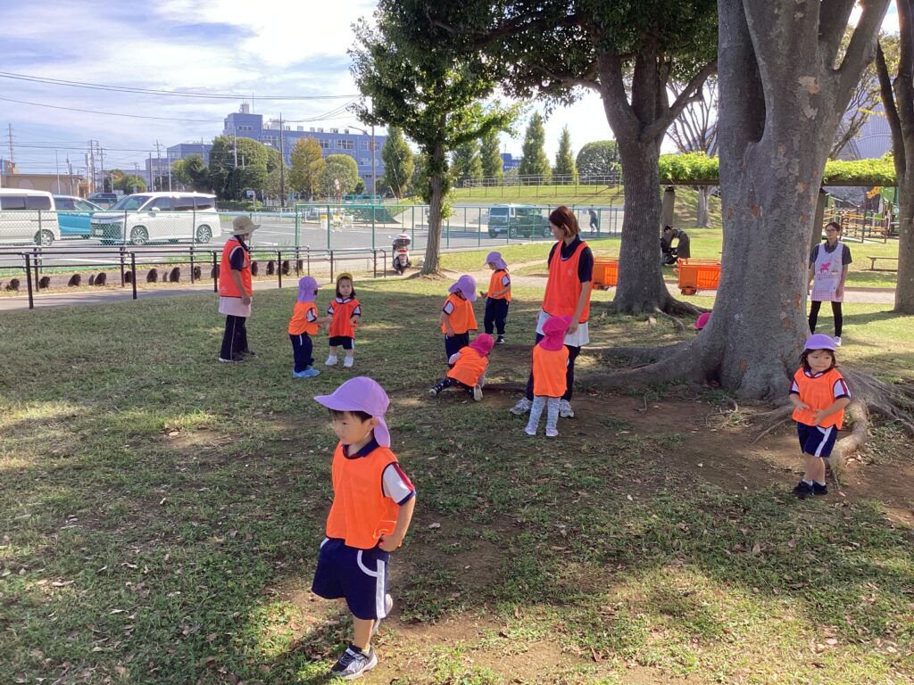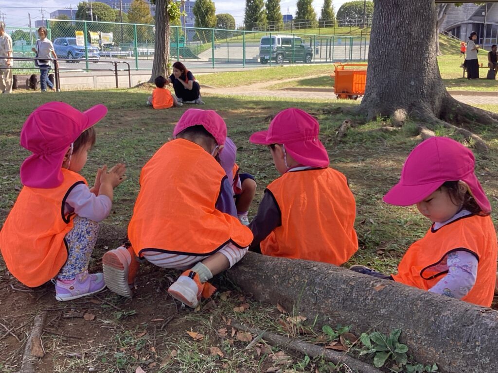 今日は、ぽかぽか組さんとC組さんでお散歩に行きました。涼しい風が吹き、動くと軽く汗をかく程度でとても過ごしやすい陽気だったので、子どもたちものびのびと遊ぶことができました。兄弟がいるおともだちが多く、おにいちゃん・おねえちゃんの後にくっついてとても仲良しでした。ぽかぽか組さんとC組さんで遊ぶことが新鮮だったので、また近いうちに一緒に遊ぶことができたらいいなと思っています♪