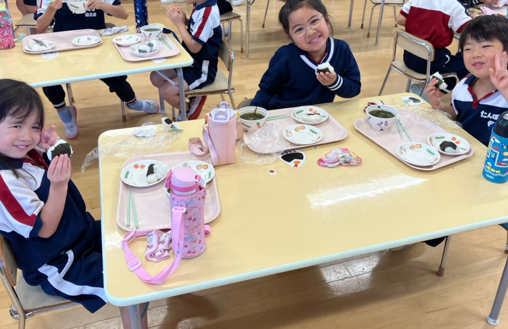 おにぎりが完成し、いよいよ”いただきます”の時間です!!今日のメニューは・・