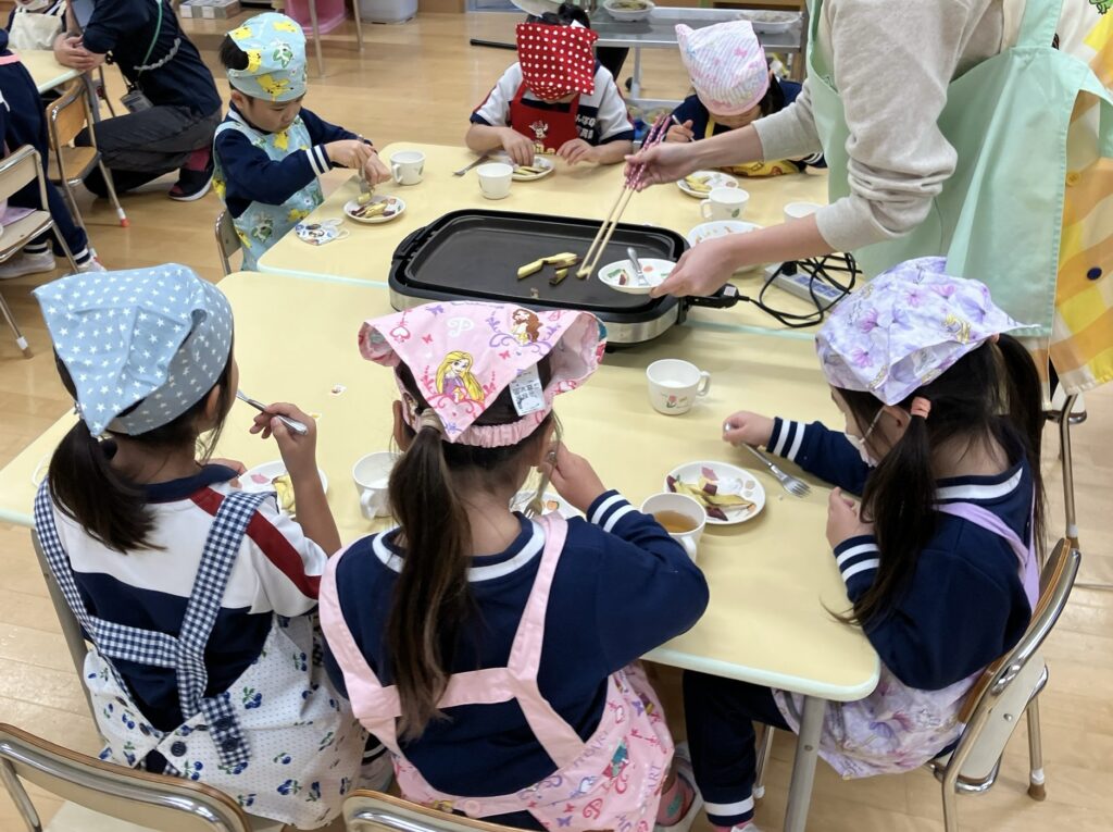 さらにB組さんは、なんと ” 初めての包丁チャレンジ!” 真剣そのものの表情でさつまいもを切る姿は、まさに小さなシェフたち!その様子は、コドモンのドキュメンテーションでぜひご覧ください!(在園児さん該当クラス限定です。本当は皆さんにご覧いただきたいくらいのステキショット満載!!)