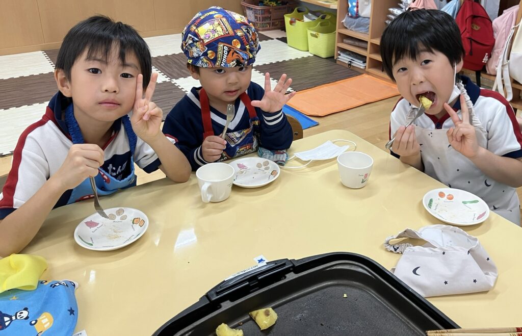 先週、みんなで一生懸命掘ったおいもが、こうして 笑顔いっぱいのおやつ へと変わる瞬間を見られることは、本当に嬉しい気持ちでいっぱいです♪