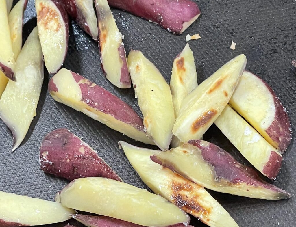 ホットプレートの上にさつまいもを並べると、ジュージューと美味しそうな音が…!みんなで耳を澄ませながらじーっと見つめていると、あっという間に ” ほくほくスティックの完成!! ”
