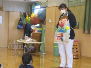ご飯をたくさん食べて虫歯にならないための大事なお話を教えてくれました。