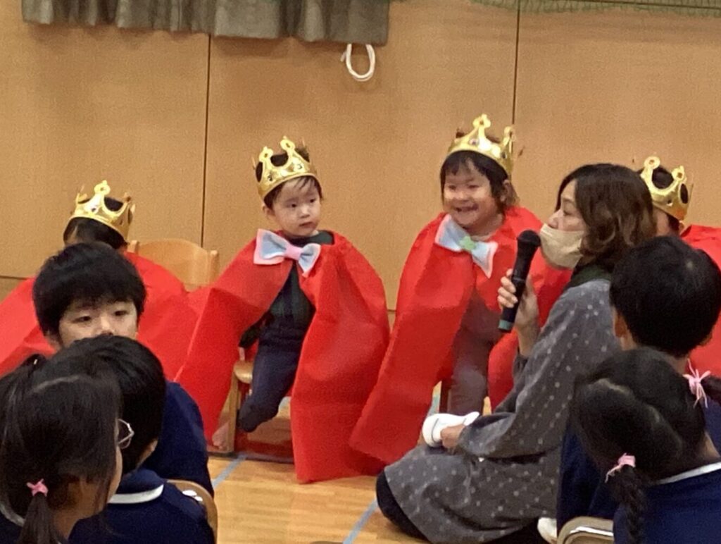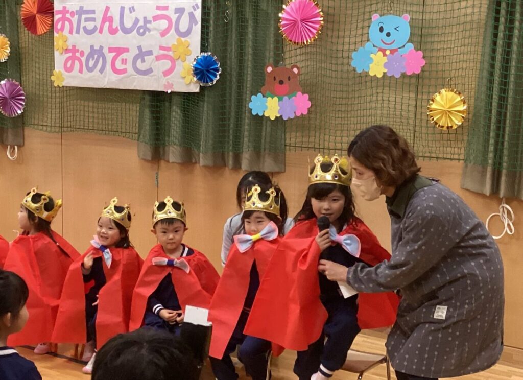 11月と12月のお誕生日会を開きました。たんぽぽ保育園でも体調を崩したお友だちが多く、欠席者が増えた日がありました。すでにみんな回復し元気に登園していますが、近隣の小学校や中学校ではまだまだ油断はできない様子です。そのため今回の誕生日会は感染予防対策で5歳、4歳のクラスのみの参加となりました。たんぽぽ保育園を代表して誕生児さんをお祝いしてくれました。