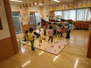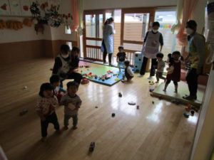 幼児クラスも保育室内で集まり、