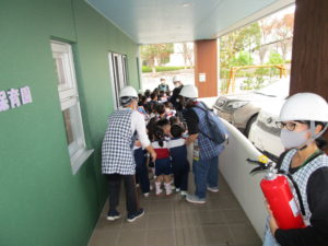 外への避難は上履きを履いたまま。