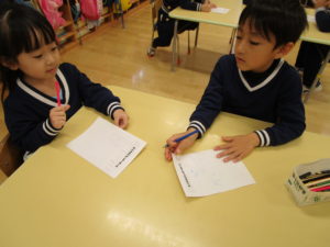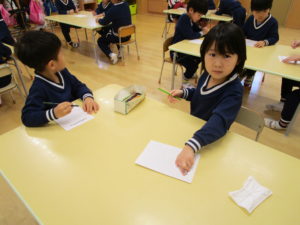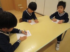 今日は発表会のプログラムの配布を行いました。裏面には一人ひとり想いを込めて子どもたちからメッセージを書きました。