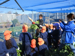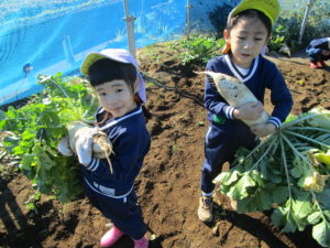 小さな種から大きな大根に成長したことに子どもたちは大喜び!