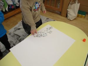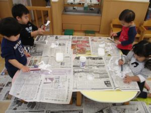 保育士の糊つけが追い付かないほどテンポよく貼ってくれました。