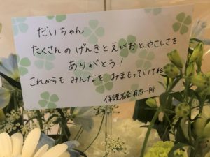 皆さまからいただいたたくさんのお気持ちや抱えきれないほどのお花、お手紙等に囲まれ、無事に空へ旅立ちました。