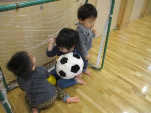 最初はゴールが珍しく、中に入ったりして観察していたお友だちも
