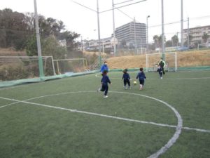 広いコートの中を一生懸命ゴールめがけて走っていました。