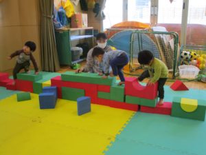 大型のソフトブロックであそびた~い! という男の子の希望通り