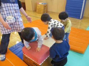 跳び箱ジャンプでは高くジャンプする1歳児のお友だち。