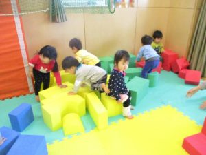 僕もできるよ~と0歳児のお友だちがよじ登り、