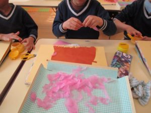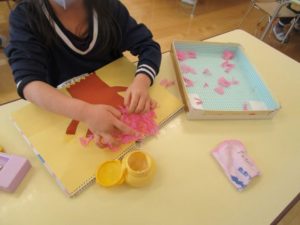 その上から花紙をちぎって花びらにしたものをのり付けしていきました。