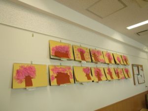 A組の保育室内にたくさんのさくらの木があるようでした。