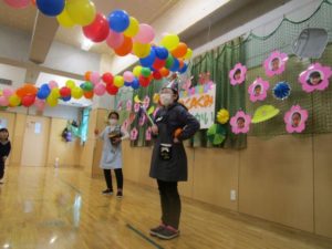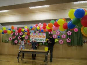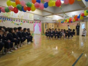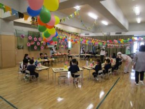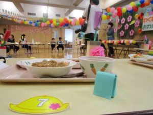 かわいく飾られた会場で楽しく給食の時間を楽しみました。