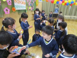 朝から「今日おわかれ会だねー」と笑顔で登園してきてくれました。