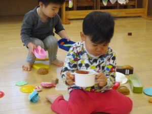 絵本を読んだりブロックやおままごとで遊んだりして、楽しく過ごしております。