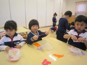 4/23(金)【わくわくC】おりがみちぎり 2021/04/23 今日は母の日制作で、おりがみをちぎってお花にしました。 自分で好きな色の折り紙を選んで、上手にちぎる事が出来ましたよ。 次回の製作は、のりで折り紙を貼る工程があります! 完成まで楽しみに待っていてくださいね。 子ども達が折り紙をちぎっている写真を載せましたので、ご覧ください。 わくわくC 根原