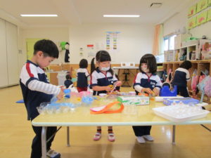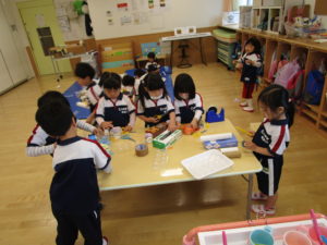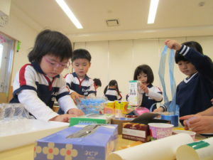5/12(火)【わくわくB】空き箱製作 2021/05/11 以前募集のお願いをしていた廃材が集まり、本日工作をしました。 それぞれが作りたい物を考えて材料を選びました。 ハサミやテープを使い、イメージしたものを作ります。 今回は初めてでしたが、経験や成長と共に今後どんなものを作れるようになるのか、楽しみですね(^o^) 引き続き廃材の提供をお願いします。 わくわくB 水谷