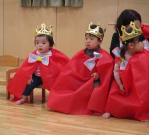 今日は午前中に4・5月生まれのお友達の誕生日会をホールで行いました。