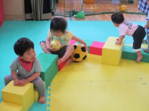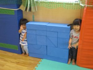 ソフトブロックをつなげて電車ごっごも始まりました。お友だちに「乗って!乗って!」と声をかける姿も。