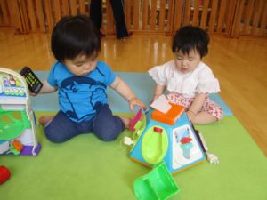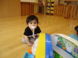 0歳さんはお部屋で新しいおもちゃであそびました。