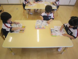 迷路遊びをおしまいにした後は、みんなの大好きな絵本タイム!