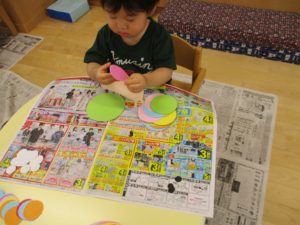 たくさんの色の中から好きな色を選んで貼っていきました。