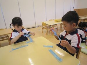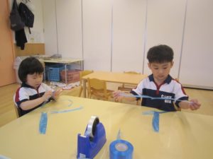 お部屋に戻ってから、七夕製作の仕上げを行いました!