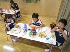ごちそうさまになるまで何度も何度もおかわりする子どもたち。